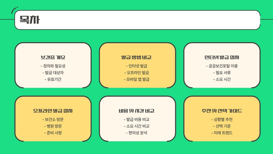 각 방법의 장단점을 잘 이해하고 선택한다면, 불필요한 시간 낭비를 줄이고 효율적으로 보건증을 발급받을 수 있습니다. 참고로, 보건증 발급 시 필요한 서류와 절차를 미리 파악하고 준비하는 것이 중요합니다. 이를 통해 더욱 원활하게 절차를 진행할 수 있습니다.