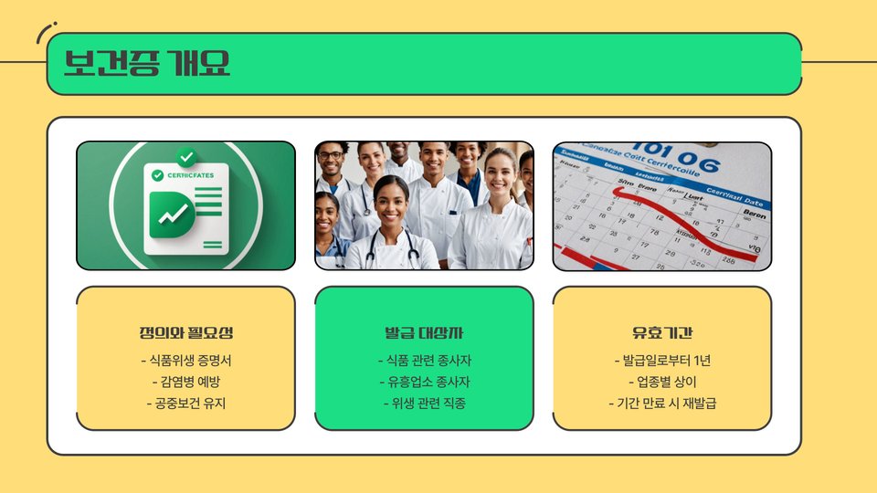 - 보건증은 특정 직업군에서 필수적인 문서입니다.