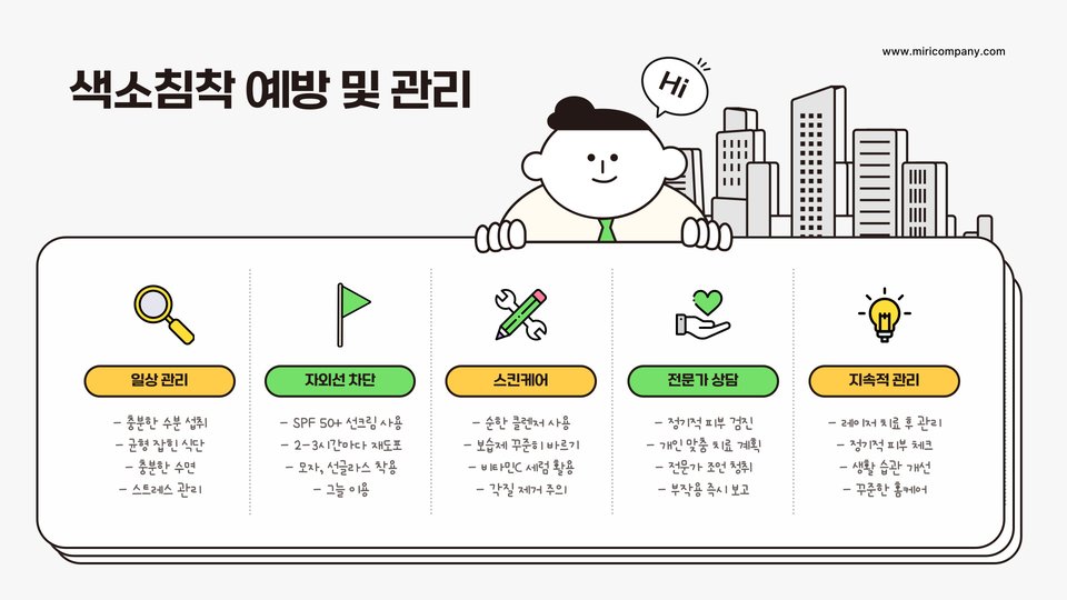 정기적인 유지 관리를 통해 색소침착을 방지할 수 있으며, 자외선 차단제 사용과 같은 좋은 습관을 병행하면 더욱 효과적입니다.