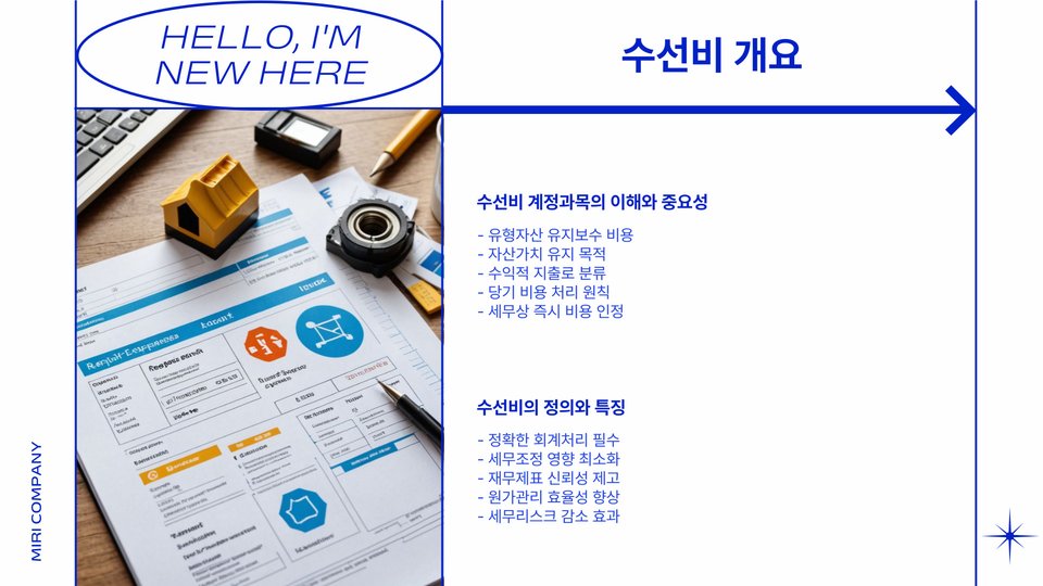 수선비, 계정과목, 재무 관리, 예방 유지 보수, 예산 수립, 데이터 분석, 직원 교육, 비용 절감, 신뢰할 수 있는 업체, 성과 평가