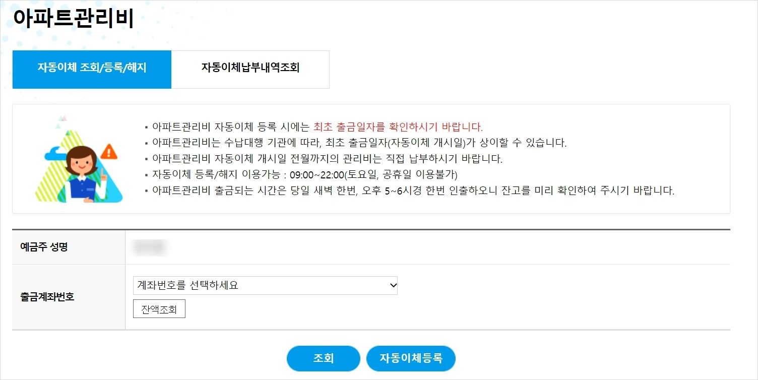 아파트 관리비 은행 자동이체 신청 방법