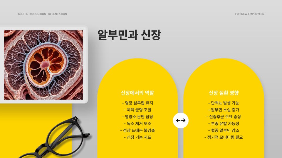 한편, 알부민 수치가 낮을 경우, 여러 가지 건강 문제가 나타날 수 있습니다. 예를 들어, 간의 기능이 저하되거나 신장이 손상될 경우 알부민 수치가 감소할 수 있습니다. 따라서 정기적인 건강 검진이 중요합니다, 알부민 수치를 정기적으로 체크하여 건강을 유지해야 합니다.