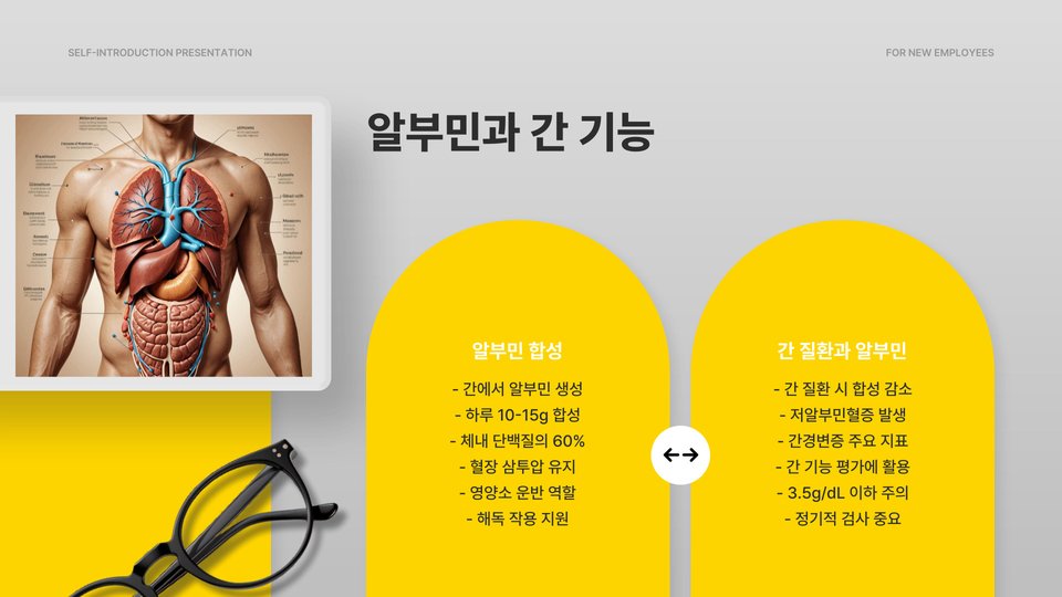 - 알부민은 체액 조절 및 영양소 운반에 필수적입니다.