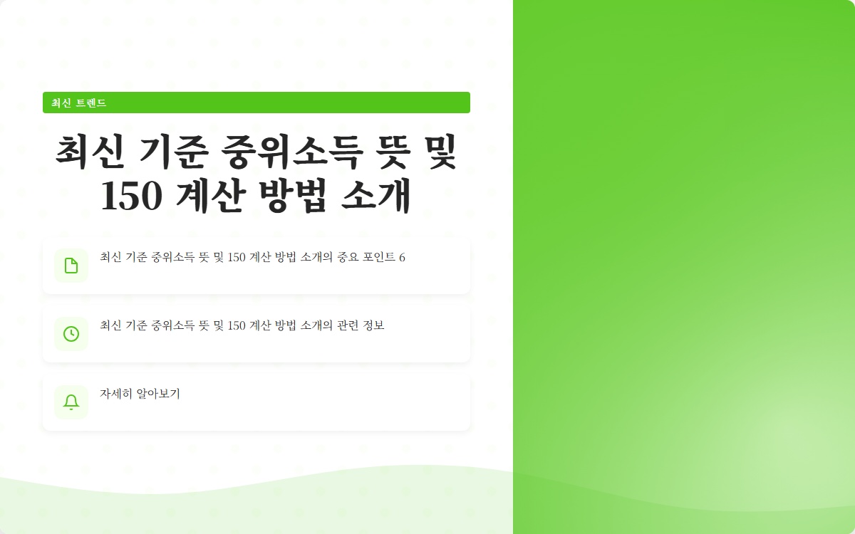 중위소득 150%는 중위소득의 1.5배에 해당하는 소득을 의미합니다. 이는 저소득층의 기준을 설정하는 데 유용하며, 각종 정부 정책이나 복지 프로그램에서 자주 사용됩니다. 예를 들어, 중위소득 150% 이하의 소득을 가진 가구는 특정 복지 혜택을 받게 됩니다. 따라서 중위소득을 아는 것은 매우 중요하며, 이를 통해 자신의 소득 수준을 객관적으로 평가할 수 있습니다.