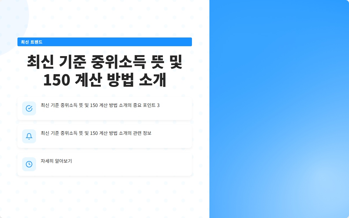 중위소득은 사회의 소득 분포에서 중간에 위치한 소득을 의미합니다. 중위소득은 특정 시점에 한 사회의 소득 수준을 파악하는 데 중요한 지표로 사용되며, 특히 복지 정책이나 지원의 기준으로 활용됩니다. 예를 들어, 한국에서는 중위소득을 기준으로 저소득층 지원이나 복지 혜택을 결정합니다. 그러므로 중위소득 150%는 이러한 지원의 기준을 이해하는 데 중요한 요소입니다.