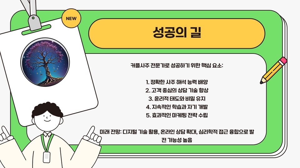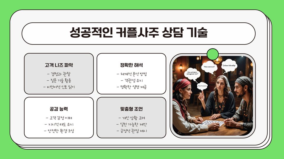 중요 포인트: 커플사주 전문가의 도움을 받되, 스스로의 정서와 상황도 고려해야 합니다.