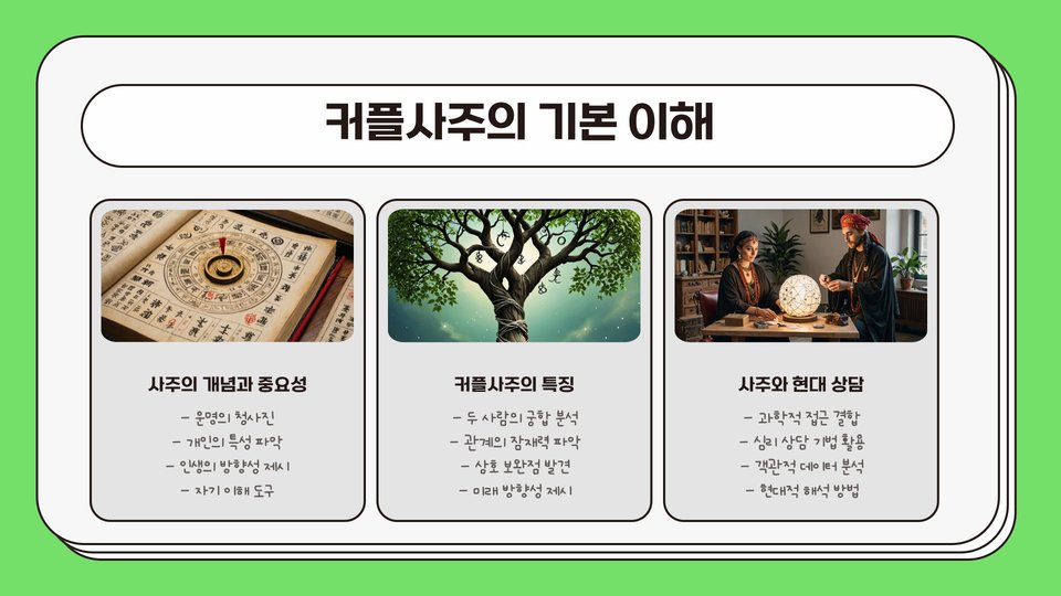 중요 팁: 커플 사주를 통한 궁합 분석은 단순한 참고 자료일 뿐, 두 사람의 진정한 노력과 이해가 관계의 성공을 결정합니다.