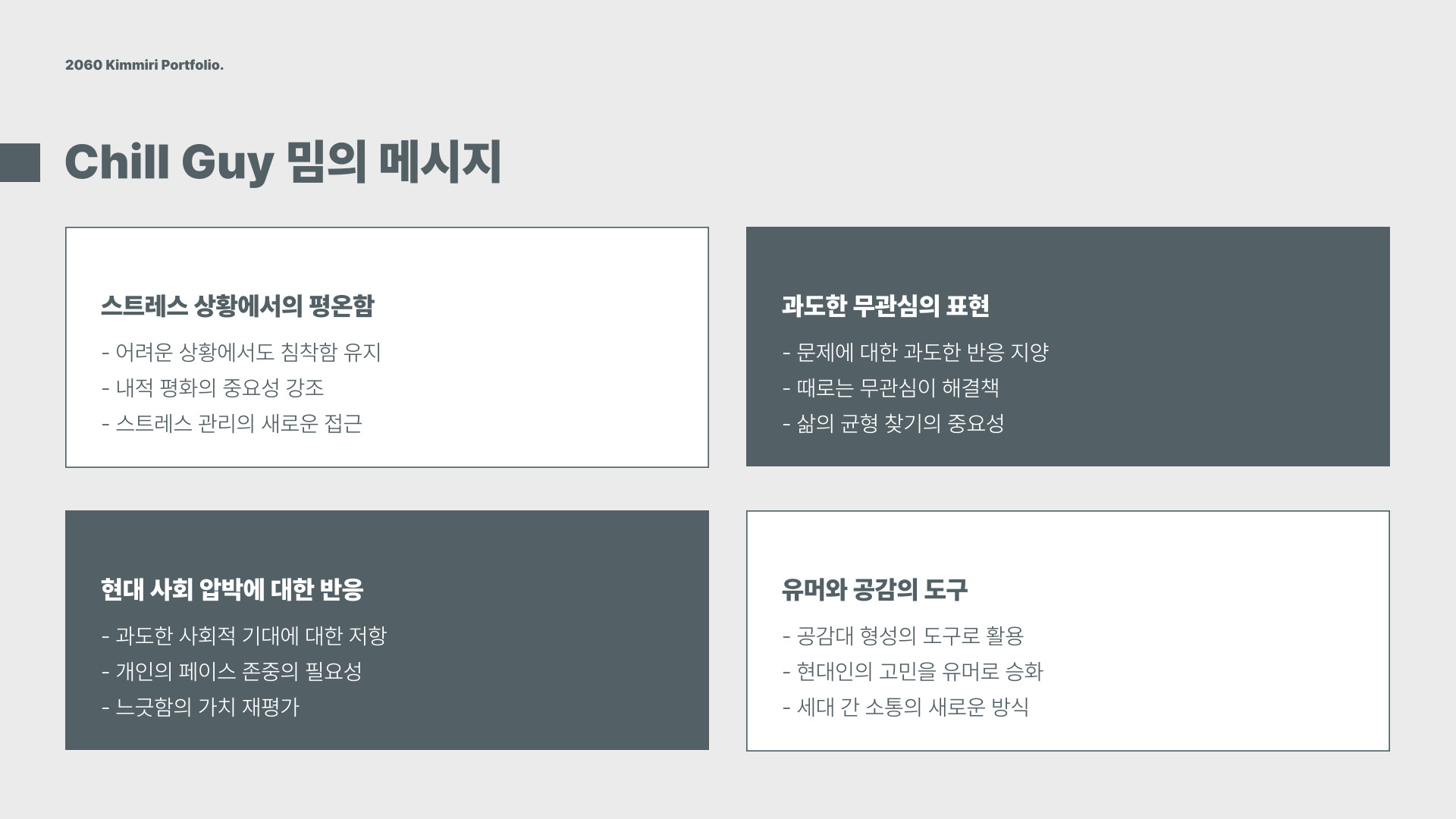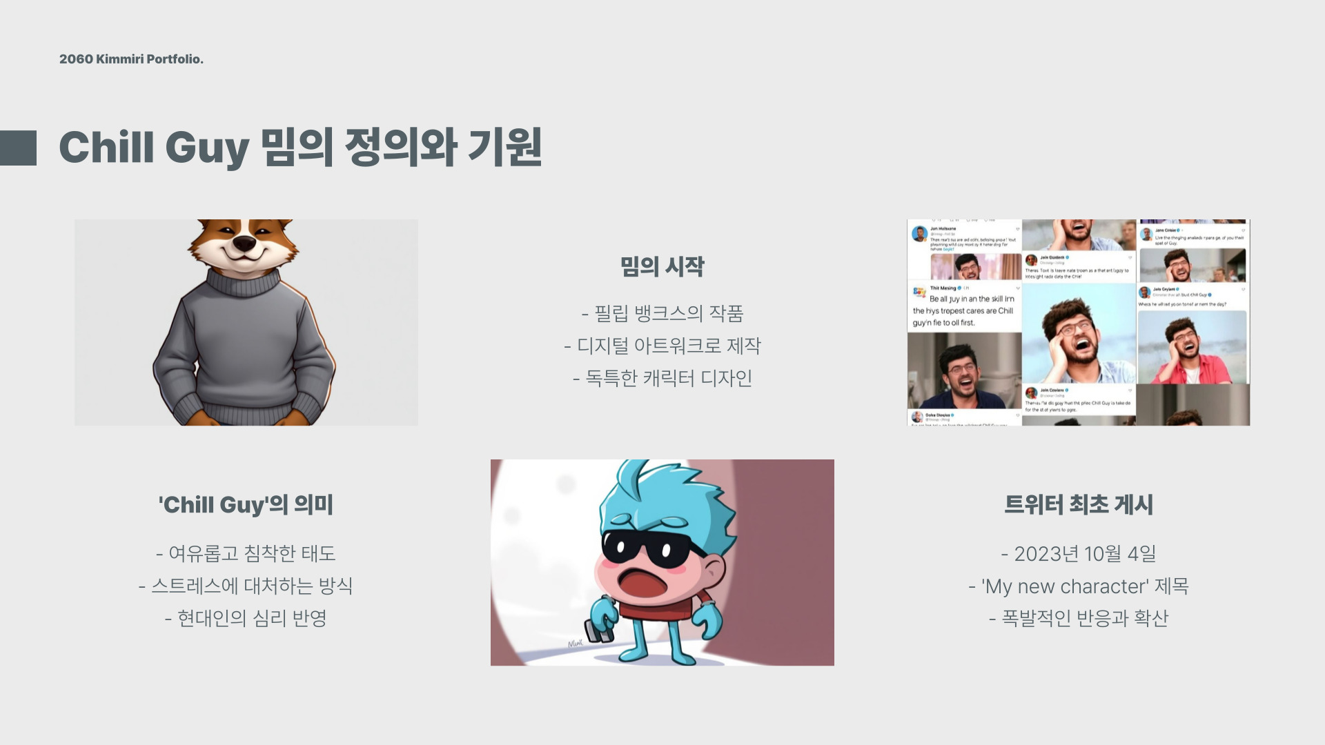 - Chill Guy는 편안함과 여유를 상징하는 밈이다.