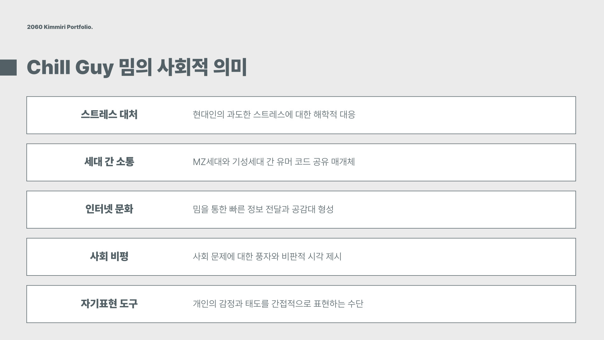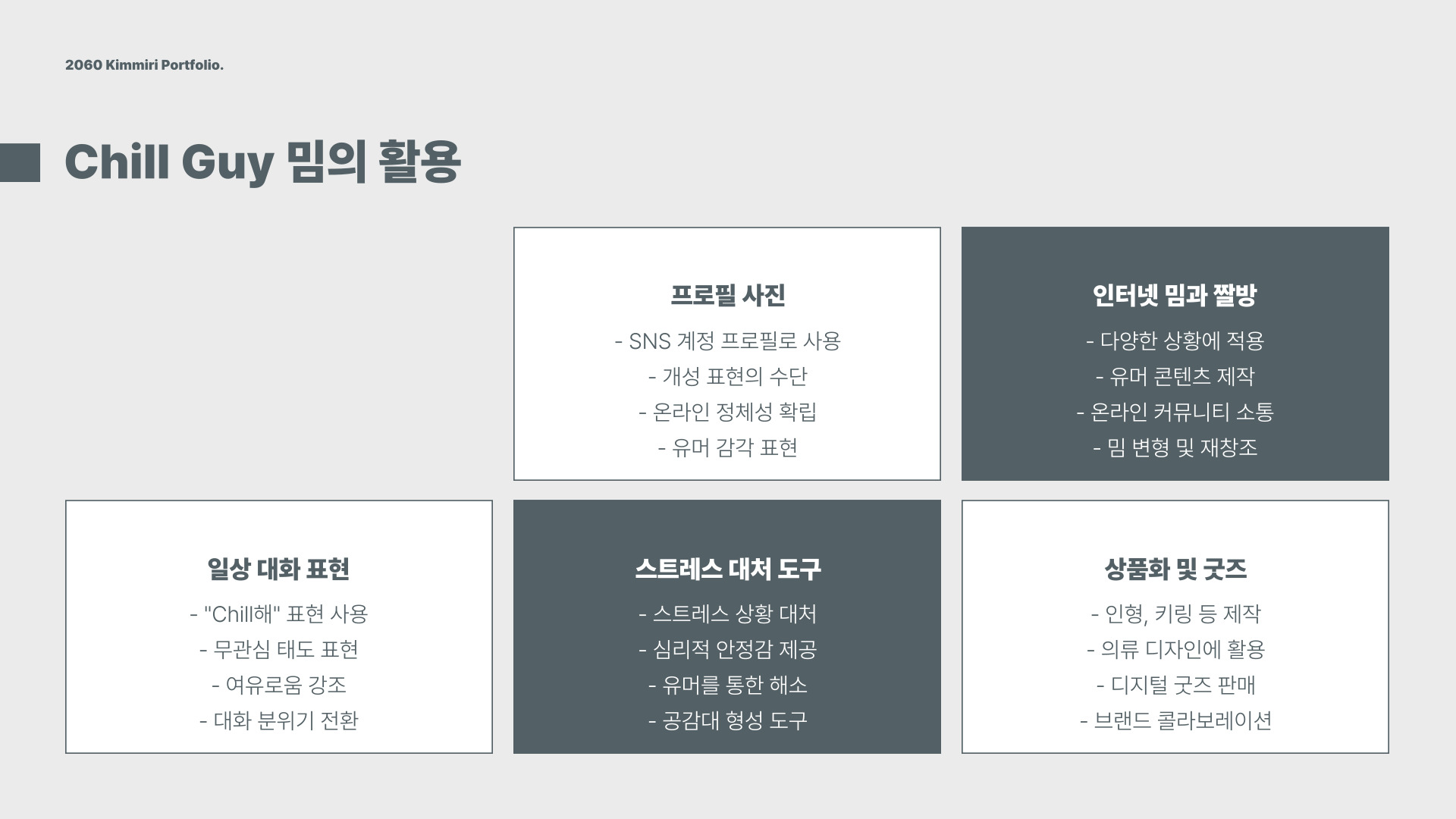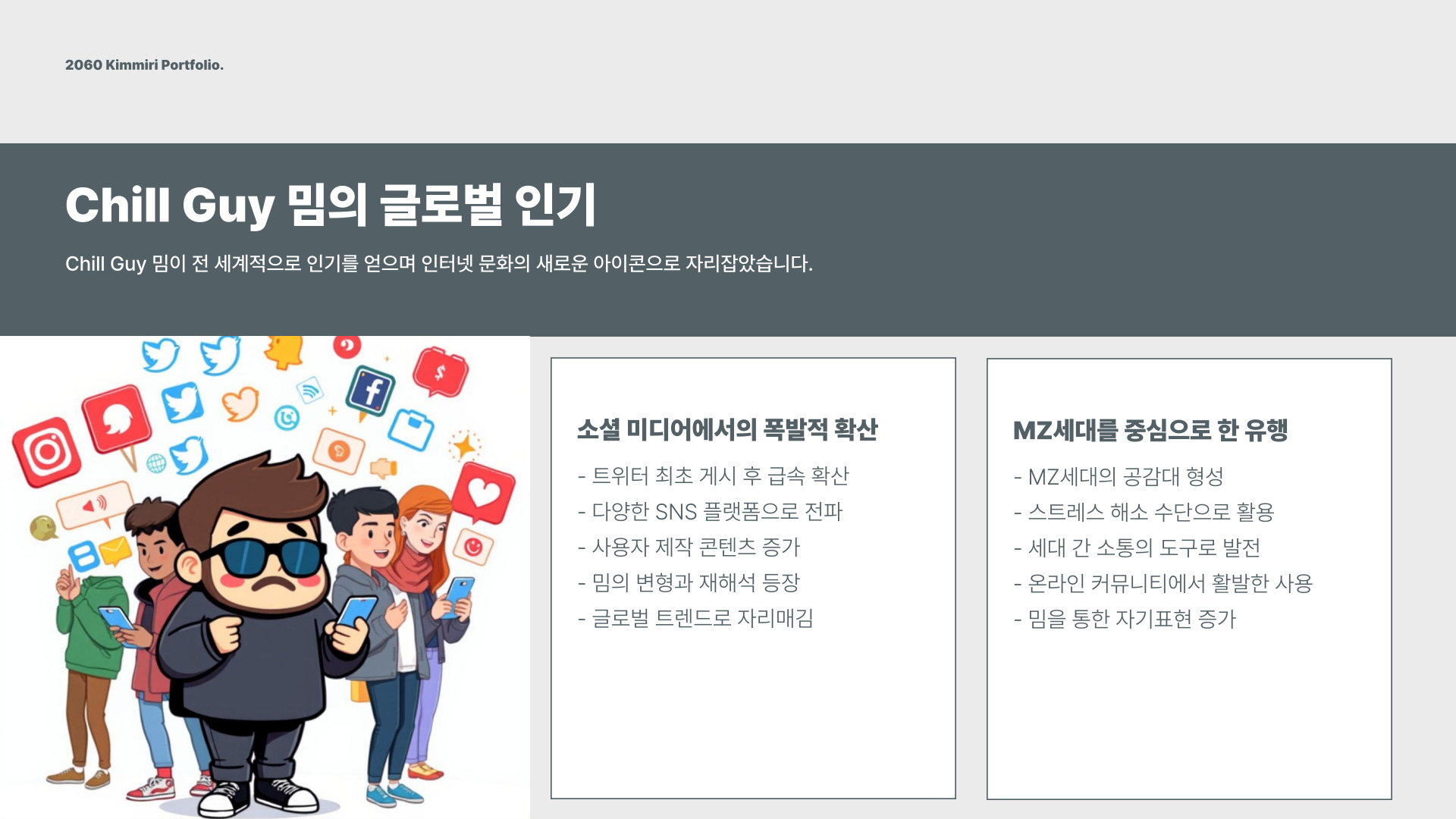 - Chill Guy는 편안함과 여유를 상징하는 밈이다.